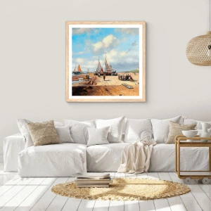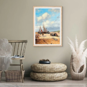 Póster en marco roble claro - Después de una pesca exitosa - 50x40 cm
