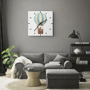 Reloj de pared - Reloj de vidrio - Un globo con una jirafa y un elefante flotando en las nubes. - 30x30cm - Viaje fantástico - Decoración de pared moderna para salón, cocina y dormitorio ARTTOR