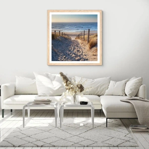 Póster en marco roble claro - El sonido del mar, el canto de los pájaros, una playa virgen entre las dunas... - 30x40 cm