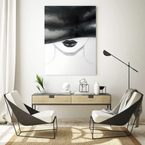Cuadro mural - Misterio Sensual - Rostro misterioso con ojos tapados en acuarela en blanco y negro