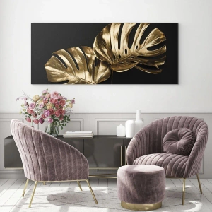 Impresión mural - Tesoros de la Naturaleza - Hojas de Monstera Doradas sobre Fondo Negro