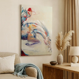 Pintura sobre lienzo "Pintura dinámica de un caballo en estilo abstracto" es una obra única que combina colores intensos con una forma expresiva. La silueta de un caballo, representada en movimiento, irradia energía y dinamismo, realzando la belleza y la fuerza de este majestuoso animal. El estilo abstracto de la composición le confiere un carácter moderno, convirtiéndola en un elemento decorativo único.