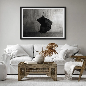 Póster en marco negro - Silueta en blanco y negro de una bailarina en movimiento contra un fondo de pared. - 70x50cm - Cargada de pasión - Decoración de pared moderna para salón y dormitorio ARTTOR