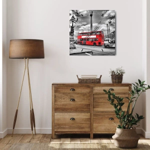 Reloj de pared - Reloj de vidrio - Un autobús rojo de dos pisos contra un fondo de ciudad en blanco y negro. - 30x30cm - El verdadero torrente sanguíneo de la ciudad - Decoración de pared moderna para salón y dormitorio ARTTOR