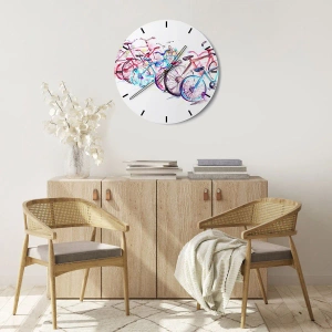 Reloj de pared - Reloj de vidrio - Bicicletas coloridas en un estilo artístico de acuarela. - 30x30cm - Reunión de ciclistas - Decoración de pared moderna para salón y dormitorio ARTTOR