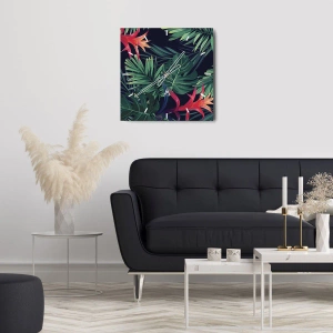 Reloj de pared - Reloj de vidrio - Hojas y flores tropicales sobre un fondo oscuro. - 30x30cm - Encender el color verde - Decoración de pared moderna para salón y dormitorio ARTTOR