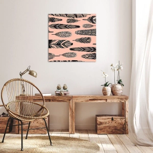 Cuadro sobre lienzo - Impresión de Imagen - Plumas decorativas sobre un fondo claro. - 50x70cm - Una colección india - Decoración de pared moderna para salón y dormitorio ARTTOR