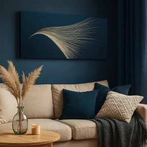 Cuadro sobre lienzo - Impresión de Imagen - Una delicada línea similar a una pluma sobre un fondo azul marino. - 50x70cm - Como el cabello de un ángel - Decoración de pared moderna para salón y dormitorio ARTTOR