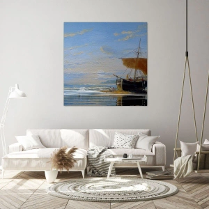 Cuadro sobre lienzo - Impresión de Imagen - Un barco en la orilla del mar en un día soleado. - 50x70cm - Agua, tierra, aire - Decoración de pared moderna para salón y dormitorio ARTTOR