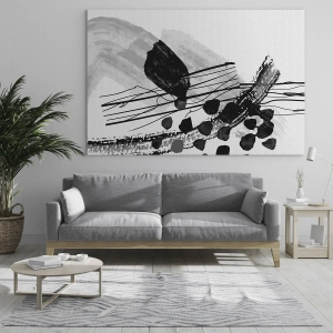 - Una abstracción moderna en blanco y negro con líneas y salpicaduras dinámicas. La pintura irradia movimiento y contraste, perfecta para interiores contemporáneos y minimalistas.