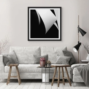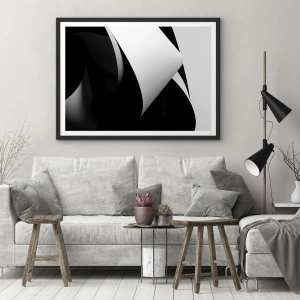 - El póster presenta una elegante composición en blanco y negro, donde la luz y la sombra crean formas abstractas. El diseño minimalista y las formas geométricas confieren al interior un carácter moderno.