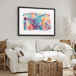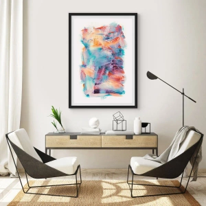 Póster en marco negro - Pinceladas coloridas en una composición abstracta - 70x50cm - Colorido desorden - Decoración de pared moderna para salón y dormitorio ARTTOR