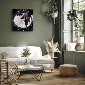 El reloj está vidrio con un espesor de 4mm. La tecnología de fabricación cumple con la clase de seguridad 2B2 según la normativa PN-EN 12600:2004 que garantiza la resistencia al impacto. El reloj de cristal está listo para ser instalado en la pared, tiene un colgador de metal fijado en la parte posterior del reloj y un espaciador de espuma para regular la distancia entre el reloj y la pared. El reloj tiene un mecanismo de flujo silencioso que funciona con una pila de 1,5 V - AA (pila no incluida).