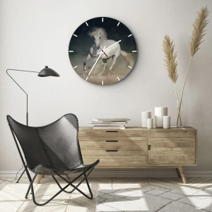 Reloj de pared - Reloj de vidrio - Un caballo blanco galopando contra un cielo borroso - 30x30cm - Libertad en estado puro - Decoración de pared moderna para salón y dormitorio ARTTOR