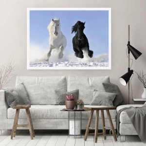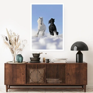 Póster - Galope blanco y negro - 50x40 cm
