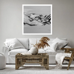 Póster - Una imagen monocromática de manos juntas sobre un fondo gris. - 50x70cm - El comienzo... - Decoración de pared moderna para salón y dormitorio ARTTOR