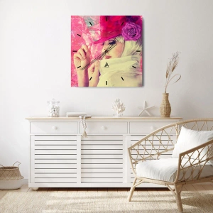 Reloj de pared - Reloj de vidrio - Retrato retro en rosa - 40x40 cm