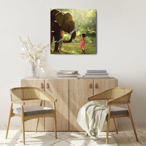 El reloj de pared "El poder de la amistad" es un elemento decorativo único que representa un momento conmovedor de la relación entre los seres humanos y la naturaleza. La esfera del reloj muestra a una niña con un vestido rojo tocando la trompa de un elefante en un entorno de bosque verde. Es una imagen llena de calidez, paz y armonía, conmovedora e inspiradora.