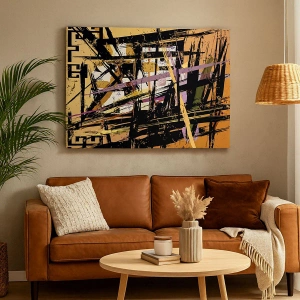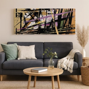 - Una composición dinámica de líneas y formas abstractas sobre un fondo en cálidos tonos beige. Una decoración perfecta para los amantes del arte moderno, que aporta energía y un carácter único a cualquier interior.