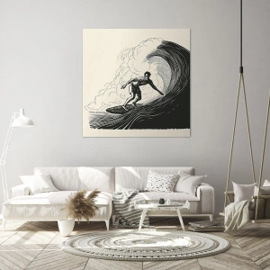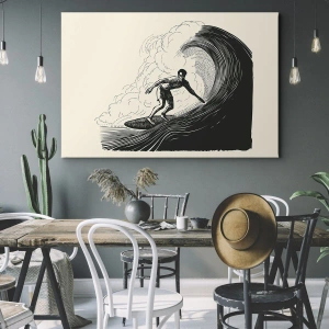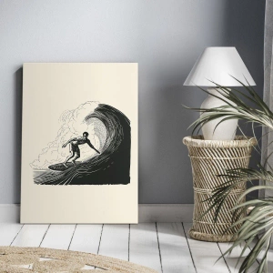 Cuadro sobre lienzo - Impresión de Imagen - Gráfico en blanco y negro de un surfista montando una ola. - 50x70cm - Rey de la ola - Decoración de pared moderna para salón y dormitorio ARTTOR