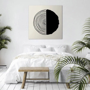 Cuadro sobre lienzo - Impresión de Imagen - Un motivo abstracto en blanco y negro inspirado en una sección transversal de madera con una división geométrica. - 70x50cm - Mitad y mitad - Decoración de pared moderna para salón y dormitorio ARTTOR