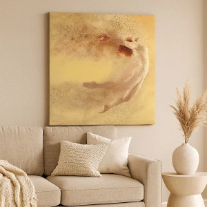 La pintura "En el éxtasis de la danza" es una obra única que combina la dinámica del movimiento con la sutileza de la expresión artística. Representa una figura en un salto danzante, rodeada de un efecto de desintegración que le otorga a la composición ligereza y fugacidad. El fondo en cálidos tonos amarillos enfatiza la energía y la emotividad de la escena, convirtiéndola en una opción ideal para interiores de estilo moderno.