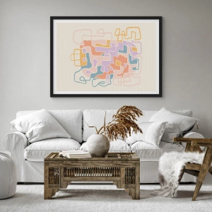 Póster en marco negro - Abstracción colorida con líneas irregulares sobre un fondo claro. - 50x70cm - Laberinto - una alegre aventura - Decoración de pared moderna para salón y dormitorio ARTTOR