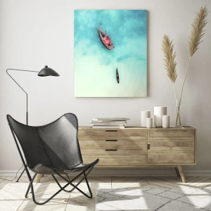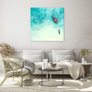 Cuadro sobre vidrio - Impresiones sobre Vidrio - Barcos en aguas azules en un entorno tranquilo. - 50x70cm - Porque en las playas de Zanzíbar, cuando las aguas se desbordan... - Decoración de pared moderna para salón y dormitorio ARTTOR