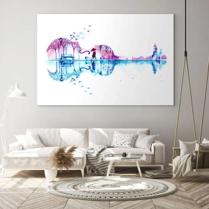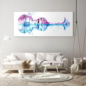 Cuadro mural - Te traeré caramelos de lluvia - Un paisaje en forma de guitarra en estilo acuarela
