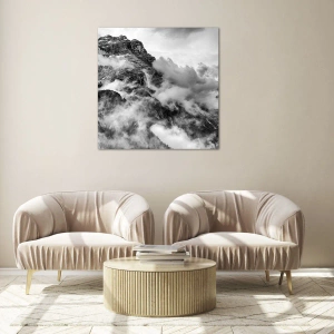 "Montañas en blanco y negro" es un cuadro de vidrio único de 70 x 50 cm que representa majestuosas montañas envueltas en niebla en una estética en blanco y negro. Delicados tonos de gris y sutiles contrastes aportan profundidad y expresividad a esta composición, creando una atmósfera única de paz y monumentalidad.