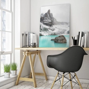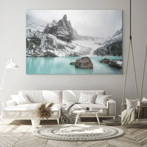 Cuadro sobre vidrio - Impresiones sobre Vidrio - Paisaje invernal con un lago turquesa - 100x70cm - En guardia - Decoración de pared moderna para salón y dormitorio ARTTOR