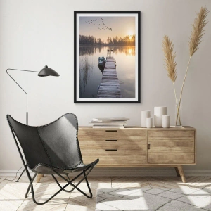 - Este póster representa un muelle sobre un lago tranquilo al amanecer. Los colores cálidos y el delicado paisaje crean una atmósfera de relajación y armonía. Perfecto para interiores inspirados en la naturaleza. El marco negro realza la claridad de la i...