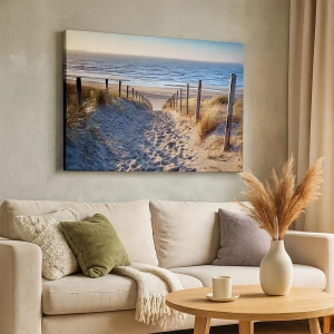 Cuadro sobre lienzo - Impresión de Imagen - El sonido del mar, el canto de los pájaros, una playa virgen entre las dunas... - 65x120 cm