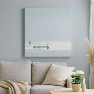 Cuadro sobre lienzo - Impresión de Imagen - Una persona sentada en un banco en un paisaje minimalista. - 70x50cm - Sí, estoy esperando - Decoración de pared moderna para salón y dormitorio ARTTOR