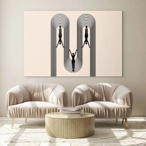 Cuadro de pared – Al revés – Siluetas negras de figuras colgadas en arcos rítmicos
