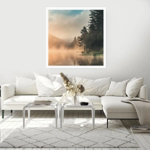Póster - Paisaje de bosque brumoso sobre un lago tranquilo - 50x70cm - El nacimiento de un día - Decoración de pared moderna para salón y dormitorio ARTTOR