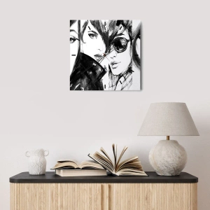 Reloj de pared - Reloj de vidrio - Dos siluetas femeninas en un estilo esquemático. - 30x30cm - La belleza multiplicada - Decoración de pared moderna para salón, cocina y dormitorio ARTTOR