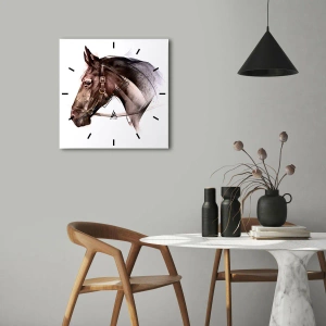 • Este reloj de pared de 30 x 30 cm, fabricado en vidrio resistente, presenta un retrato de caballo de estilo artístico sobre un fondo claro. Perfecto para interiores elegantes y minimalistas.