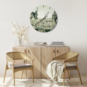 Reloj de pared - Reloj de vidrio - Gárgolas con vistas al horizonte de París y a la Torre Eiffel - 30x30cm - Charlas parisinas - Decoración de pared moderna para salón y dormitorio ARTTOR