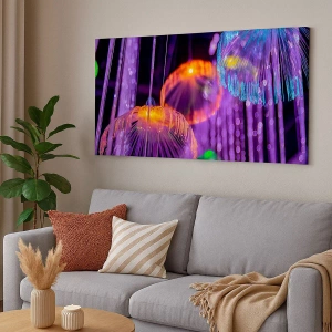 Cuadro sobre lienzo - Impresión de Imagen - Medusas luminosas y coloridas en un entorno oscuro. - 80x120cm - Fuente luminosa - Decoración de pared moderna para salón y dormitorio ARTTOR