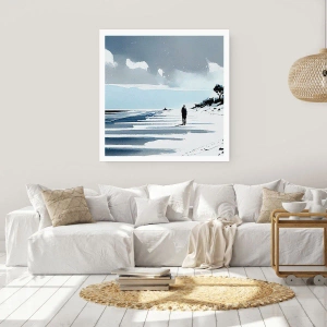 Póster - Una figura solitaria en la playa en tonos de acuarela. - 50x70cm - Solo conmigo mismo - Decoración de pared moderna para salón y dormitorio ARTTOR