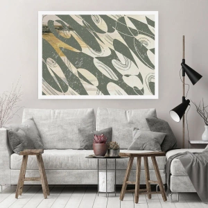 Póster - Formas dinámicas en tonos verdes y dorados. - 100x70cm - Abstracción rítmica - Decoración de pared moderna para salón y dormitorio ARTTOR