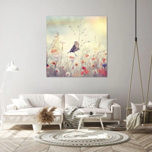 Cuadro sobre lienzo - Impresión de Imagen - Retrato de pájaro con prado de fondo - 30x30 cm