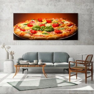 La composición "Pizza con tomate, albahaca y queso fundido" aporta alegría y energía positiva a cualquier espacio. Es ideal como elemento decorativo en establecimientos de restauración como pizzerías o restaurantes, donde creará un ambiente que invita a disfrutar de la comida. Esta lámina también es una excelente idea de regalo para los amantes de la gastronomía que valoran la estética combinada con la practicidad. Su versatilidad la hace adecuada para diversos estilos de interior, desde modernos hasta rústicos. Esta lámina fue producida por ARTTOR, lo que garantiza la más alta calidad de fabricación. El formato horizontal de 70 x 50 cm la convierte en una decoración perfecta para una variedad de ambientes, aportando calidez y un carácter apetitoso a los interiores.