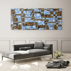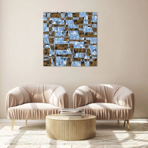 Cuadro sobre vidrio - Impresiones sobre Vidrio - Abstracción geométrica con tonos azules y marrones. - 50x70cm - Un recorte del desierto - Decoración de pared moderna para salón y dormitorio ARTTOR