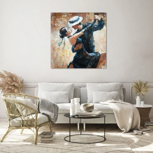 Cuadro sobre vidrio - Impresiones sobre Vidrio - Una pareja bailando con un estilo elegante y un toque clásico. - 70x50cm - Estilo Rudolf Valentino - Decoración de pared moderna para salón y dormitorio ARTTOR