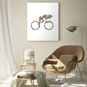 - Esta singular pintura representa una bicicleta elaborada con elementos metálicos de estilo industrial. Una decoración perfecta para los amantes del arte mecánico y los interiores modernos.