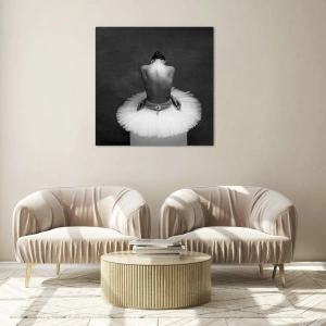 Cuadro sobre vidrio - Impresiones sobre Vidrio - Una bailarina sentada con una falda de tul contra una sombra. - 70x50cm - Rodeada de pétalos - Decoración de pared moderna para salón y dormitorio ARTTOR