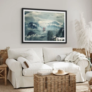 - El póster muestra un barco en un mar tempestuoso cerca de un castillo envuelto en niebla. El expresivo paisaje, lleno de misterio y dramatismo, crea una atmósfera extraordinaria. El marco negro realza la profundidad de la imagen, aportando elegancia al...