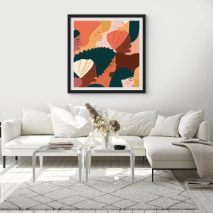 La paleta de colores dinámica, desde cálidos tonos naranja hasta un azul marino intenso, le da al póster un carácter vivaz y enérgico. La claridad de las líneas y la creativa disposición de las figuras hacen que la obra sea llamativa y aporta un toque artístico único. Este póster realza el estilo moderno y la individualidad de cualquier interior.